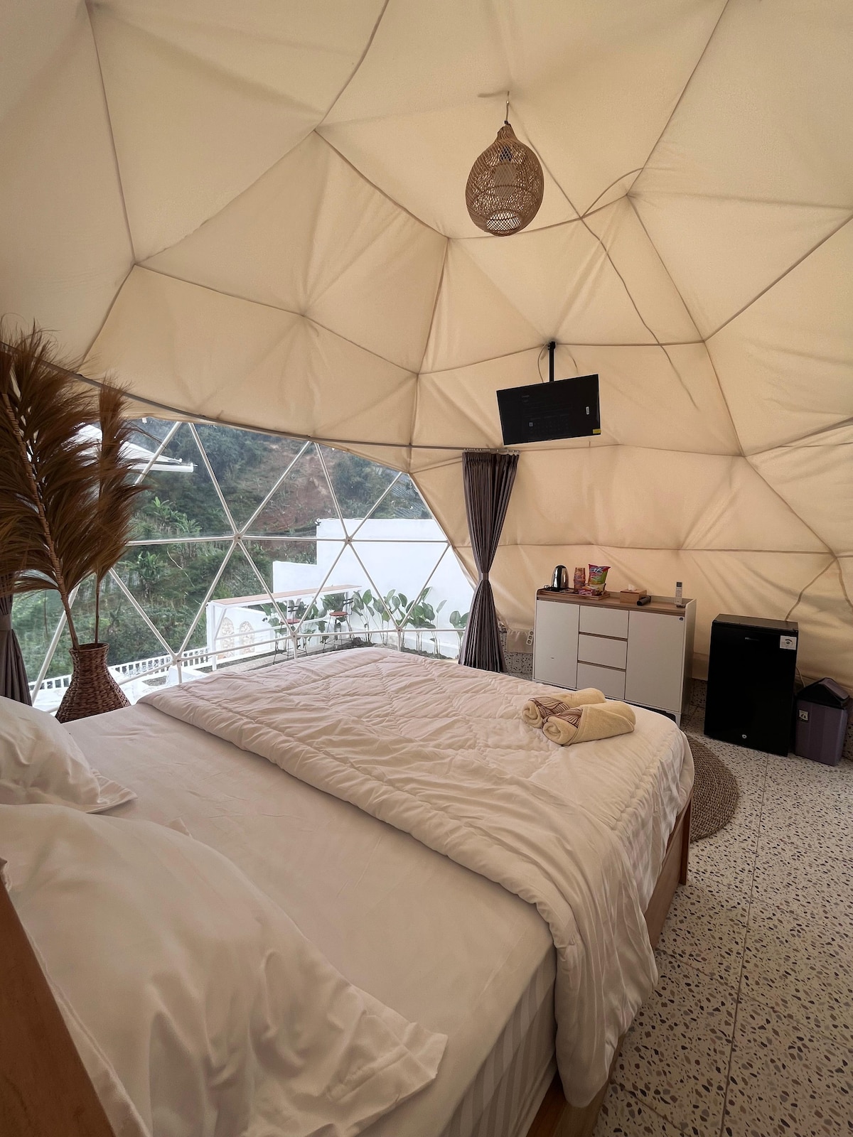 Nikmati menginap di glamping dome suasana indah di tempat romantis ini di tengah alam dengan suasana yang sejuk