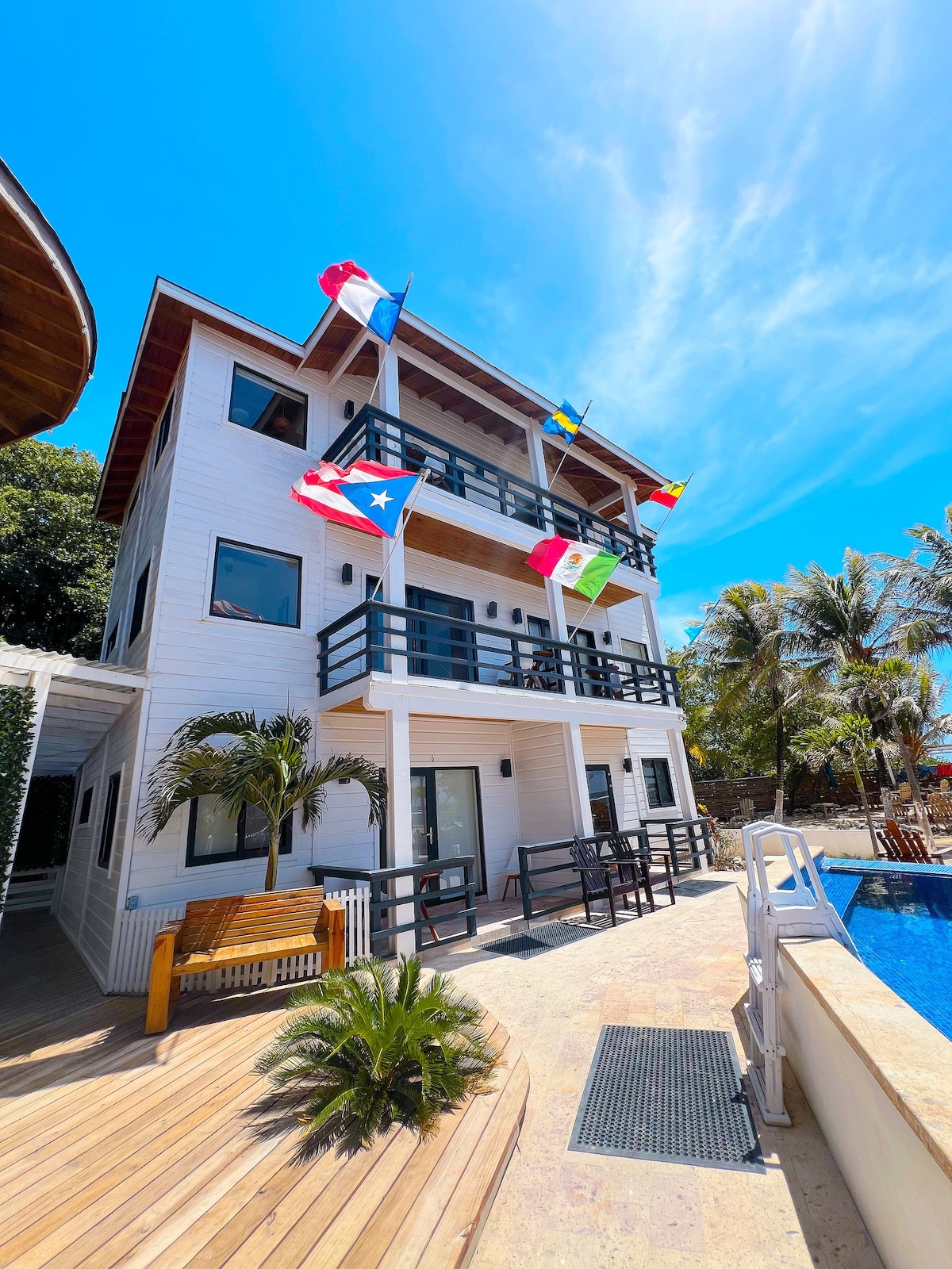 Posada Seremein has 8 studios: top-floor units with partial ocean views and lower floors with beautiful tropical garden views. Each studio includes a queen and single bed, private bathroom with hot water, kitchenette, air conditioning, Wi-Fi, and a balcony with a hammock. Our beachfront property features a pool, breakfast at the on-site Argentinian Grill, special discounts for guests, and free access to beach chairs on West Bay Beach.