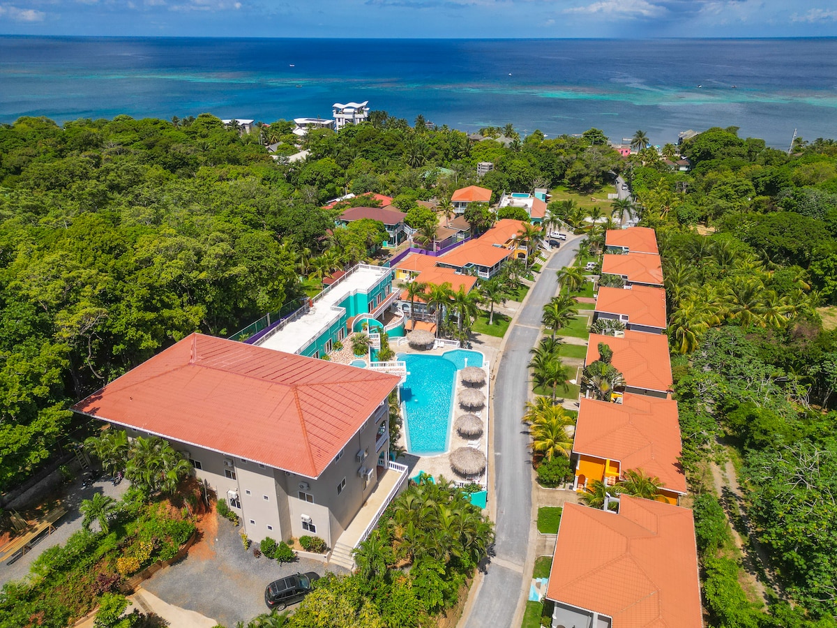Spend your beach vacation enjoying the wonderful Roatán sun right from the comfort of this condo. Also you have access to the community pool! Beautiful and well-equipped condo with spacious balconies & home comforts, the coziness of this unit will make you feel at home! Located in the heart of the West End, just a short walk away you can swim in the crystal clear waters of West End Beach and enjoy amazing local cuisine (all within walking distance of the unit).