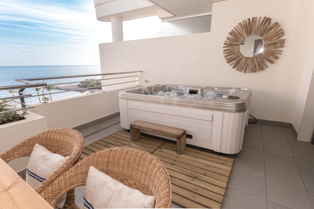 If you’re looking for complete relax in the beautiful beach of Máscarat, this apartment is just for you. Surrounded by the beautiful mountains of Altea, the Mediterranean Sea in front of you, and a community that has everything to offer. Take advantage of the full gym, sauna, indoor and outdoor pool and pádel court. No need to leave the complex to enjoy your vacation. Walking distance to fun restaurants, cafes, and outdoor activities such as hiking, jet skiing, and more.