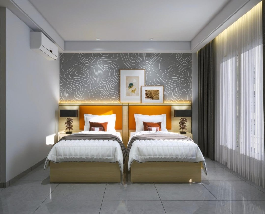 Modern Twin Room – Perfect for Corporate, Family & Leisure Travelers. Ideal For: ✅ Corporate & business travelers ✅ Families seeking a safe, hygienic stay ✅ Leisure guests looking for comfort and convenience
