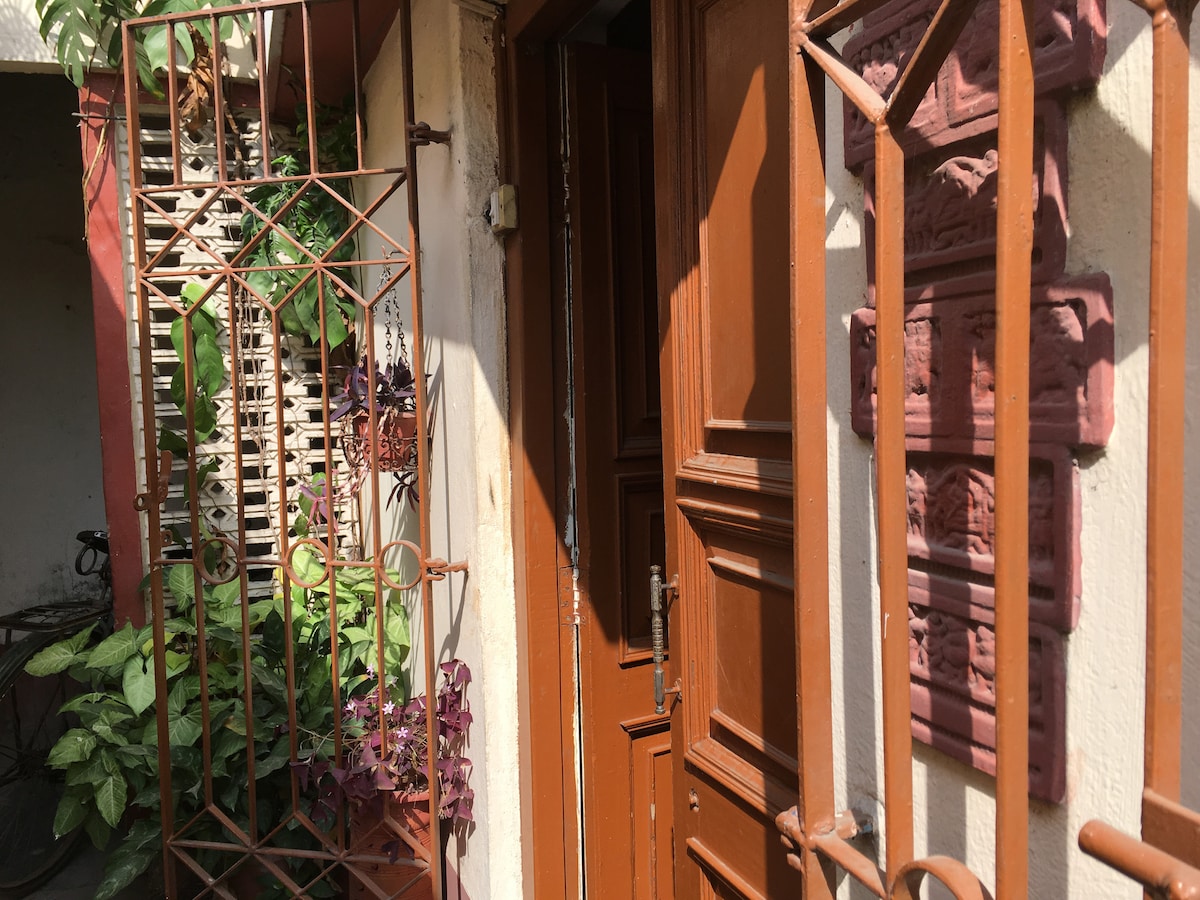 Welcome to a cozy rustic-chic stay! At Home92 get to experience a yester-years high ceilinged spacious bedroom with an inbuilt kitchenette & attached balcony. Sanitary requirements entails an unattached private bathroom. Located in the 1st floor of my home with a separate entry in the heart of Sakchi, Jamshedpur. Few highlights blow- - Just 2.5 mins walking distance to Sakchi main market - Good connectivity and ease of public transportation access. - Easy accessibility to shops, restaurants etc.