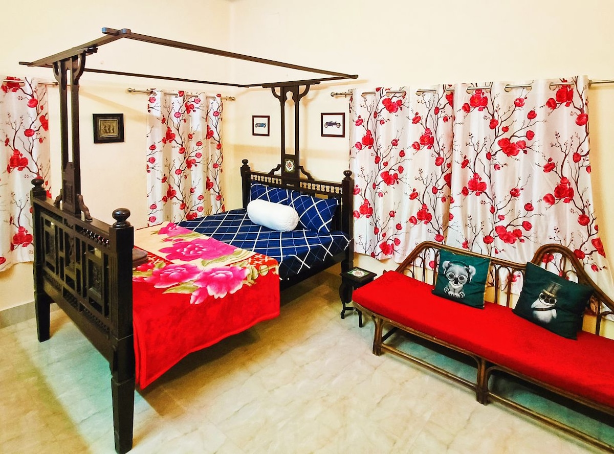 Kick back and relax in this calm, stylish space. Perfect for professional travelers looking for a calm stay after hectic office hours. Very safe for single travelers on a vacation who wishes to explore Kolkata and its heritage. Not recommended for couples, group of friends or party-goers.
