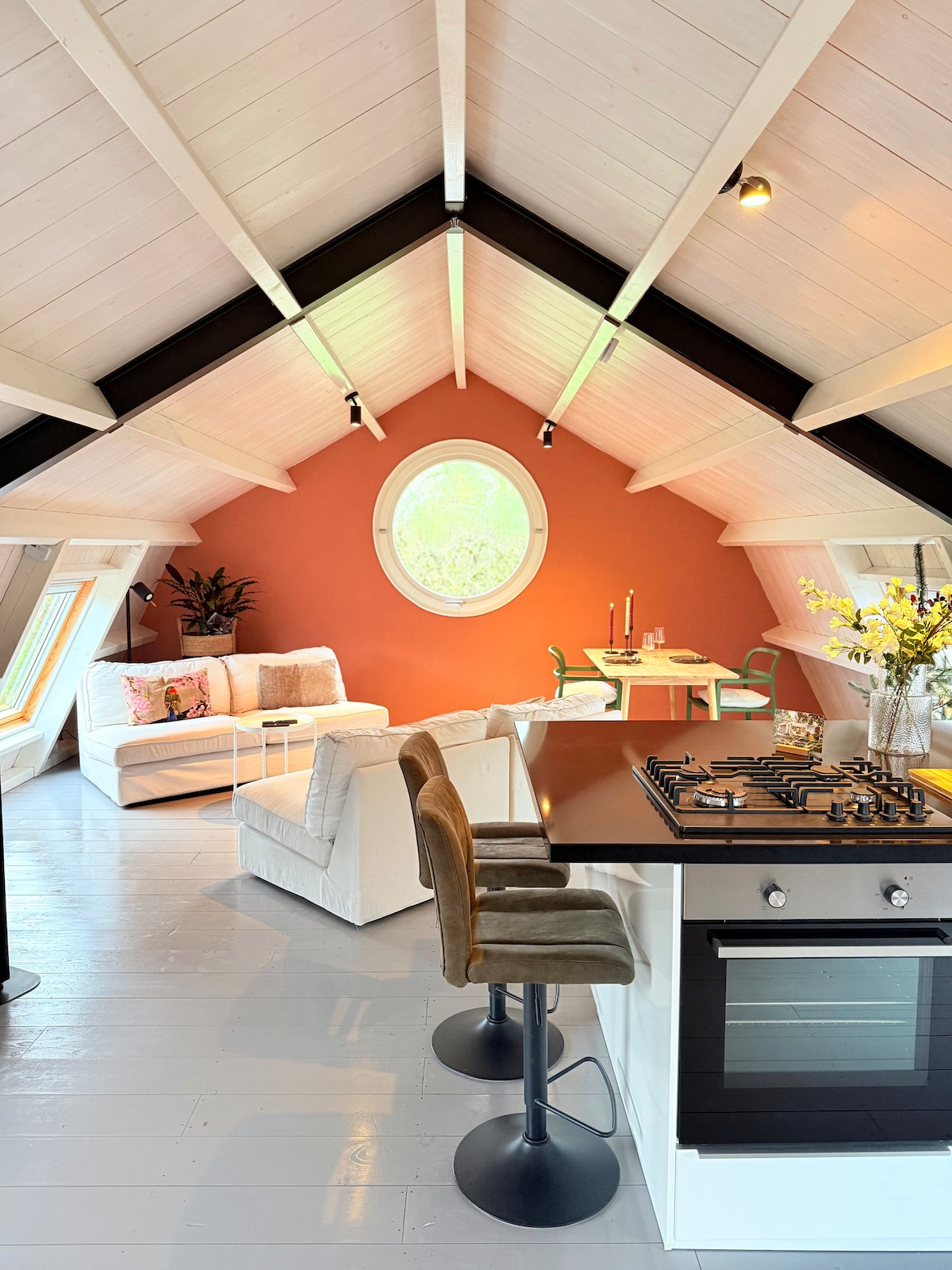 In onze woonboerderij bevindt zich een sfeervol appartement met eigen entree, vloerverwarming en houtkachel. In de goed uitgeruste keuken is het gezellig ontbijten. Er is een badkamer met regendouche en zachte handdoeken en een ruime kamer met een heerlijk, verstelbaar bed, houtkachel en een lekkere bank om op te lezen of tv op te kijken. De hoge ramen bieden prachtig uitzicht op de tuin met terras. Ensuite is de tweede slaapkamer voor 2 personen. Er staat een slaapbankje voor een 5de persoon.