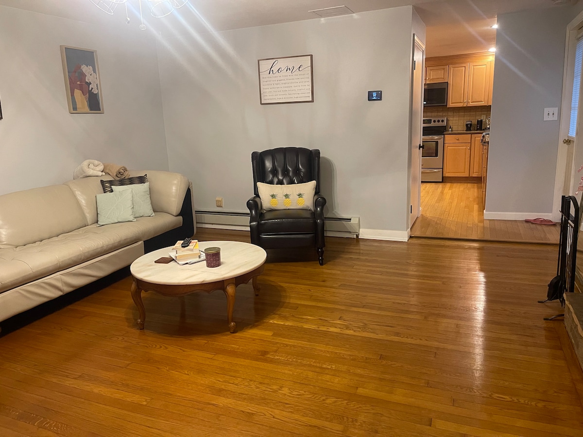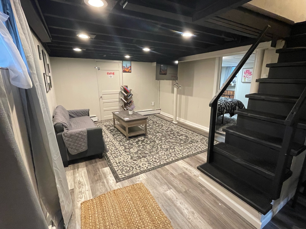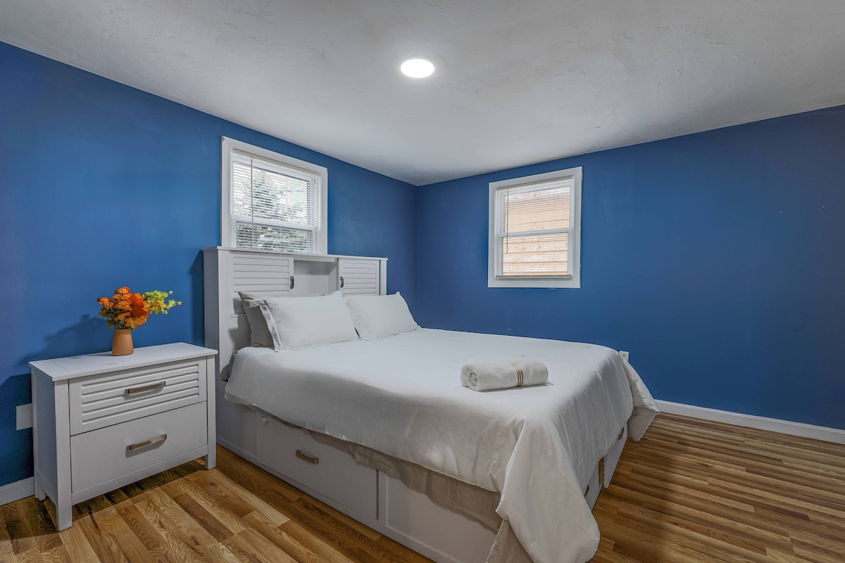 Your home away from home is a spacious & newly renovated basement/in-law apartment (approx 1100 sq feet) located below the main house, with its own private entrance, dedicated parking & in walkable neighborhood. The unit has a bathroom, full kitchen, living room & bedroom w/queen bed & extra tv. Hubbardston is a quaint little town with no stop-lights yet conveniently located to many beautiful hiking trails, fishing spots and lakes. 10 minutes from route 2 and 15 minutes from Mt Wachusetts.
