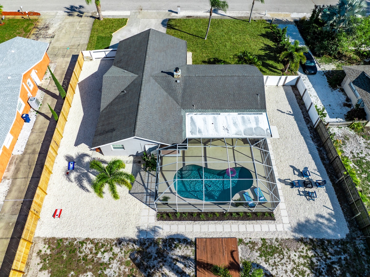 Enjoy Florida sun in a stunning, newly renovated 4/2 pool home! We have provided almost everything we could think of including five 4k TVs w/ Netflix and cable, wifi, heated (optional) salt water pool w/ 7' privacy fencing, adult bikes, beach gear, Pack & Play, office, board games, relaxing lounge chairs, stocked kitchen, washer & dryer, garage parking, dog crate, all in a quiet and safe neighborhood. Oh, and of course it's just 5 miles to world renowned beaches.