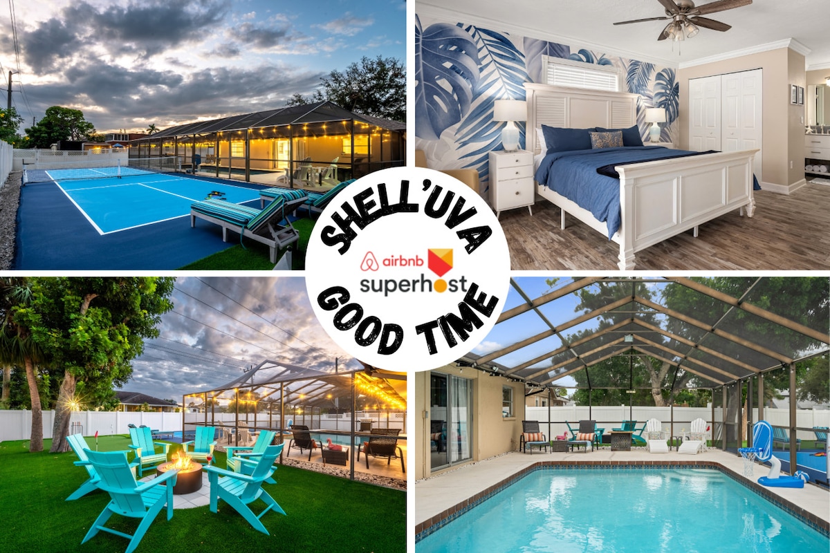 Welcome to Sunny Oasis, a luxurious vacation home with easy access to Bradenton’s local attractions, including beautiful beaches. The incredible property features a heated pool and is the only one in the area with a private pickleball/basketball court. Other modern amenities and decor make this the perfect place for your next vacation. Bradenton Beach - 10 Min Drive Riverwalk - 10 Min Drive Anna Maria Island - 10 Min Drive IMG Academy - 10 Min Drive Sarasota - 20 Min Drive Learn More Below!