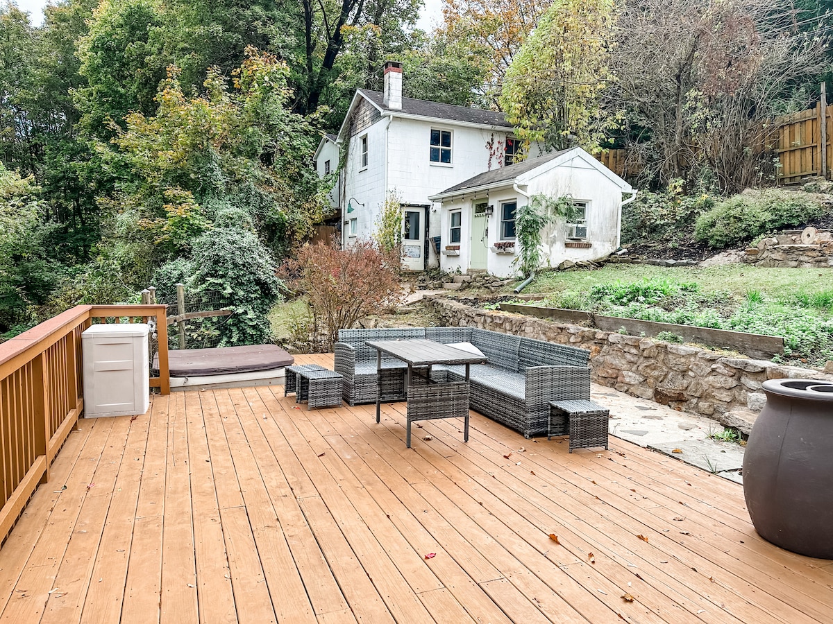 The Cottage at Hoffman Barn is a freestanding modern studio cottage located on what was once a dairy farm. The cottage is filled with eclectic art and modern appliances. Outside, your private deck is surrounded by mature specimen trees, birds and nature! You will love the charming waterfall patio and freedom to walk most of the four acre property including visits to goats and chickens at the stable. Most amenities needed for a lovely private getaway or a productive business trip are included.