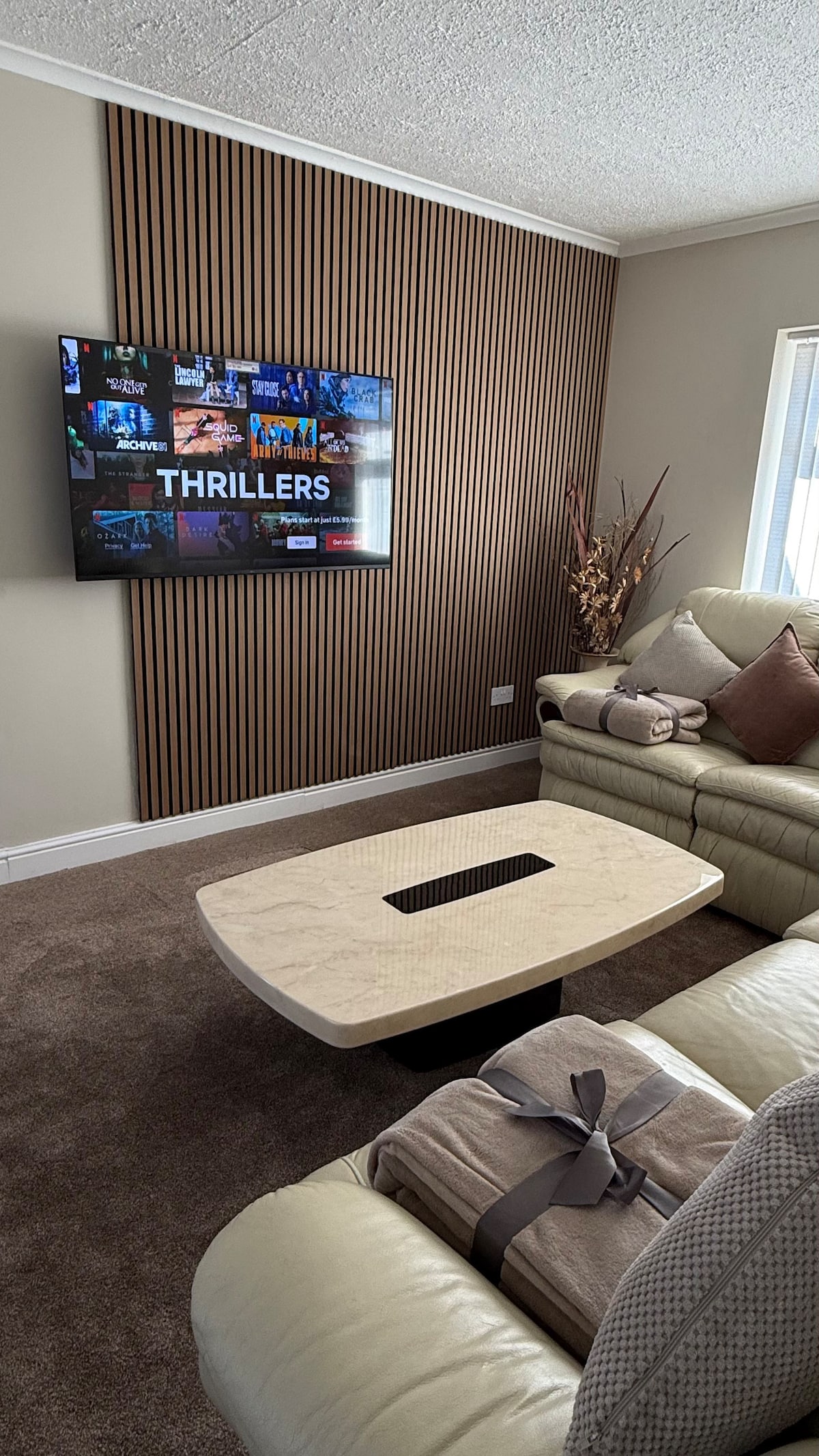 Enjoy a large, cosy yet vibrant space ideal for weekend trips to nearby tourist attractions or perfect for longer term stays. Equipped with a dedicated workspace and fast WiFi, perfect for working from home. There is a super comfy corner sofa and 46" smart TV to relax and wind down from the day. The kitchen features a range cooker and American fridge freezer for cooking up a storm. The bedroom is cosy and welcoming with plenty of storage.