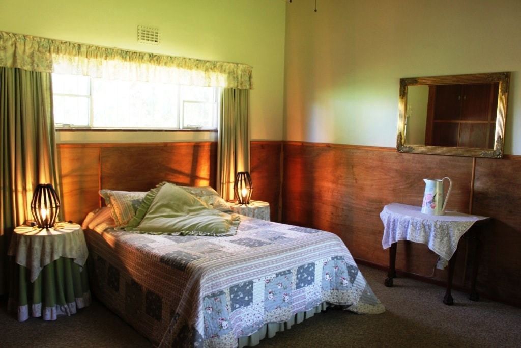 A cosy & pretty self-catering unit nestled privately at the back of the farm. This cottage has a king size bed, lounge and well-equipped kitchen with a walk-in closet. The private garden has BBQ facilities and a hanging day bed perfect for afternoon naps. There is also a splash pool. Well behaved pets are welcome. 1 pet @R100 per pet.