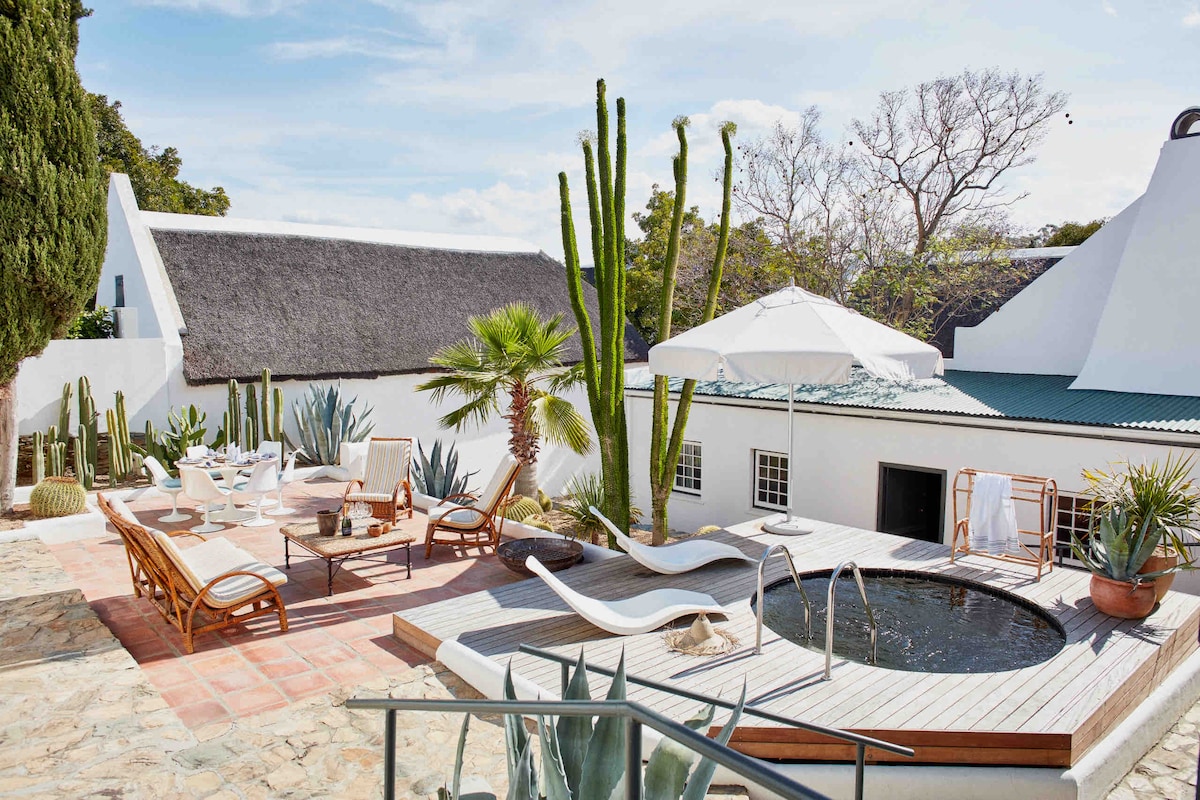 The Onverwacht Cottage on our historic wine farm offers a unique farm experience in style. Emerge yourself in nature. Swim in the dam, hike up the mountain, relax in the sauna with panoramic view. Walk through the vineyard, explore the mountain bike trails. Or just enjoy the peace and quiet and enjoy the breathtaking views. Make a fire on the deck overlooking the water and have a glass of our own wine. The perfect hideaway to explore the wineland's and Cape Town.