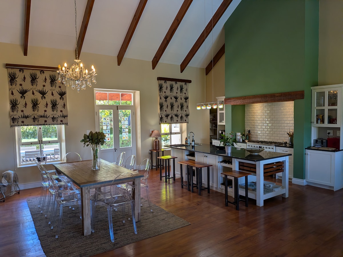 Nestled in the tranquil town of Koringberg, Milsan House—meaning "Wheat Mountain House" in Korean—offers a serene escape. Immerse yourself in nature, listen to birdsong, read under the open sky, and gaze at the stars. Unwind in the hot tub, cool off in the sparkling pool, or gather around the firepit under a canopy of stars. With a sprawling garden and thoughtfully designed spaces, Milsan House is the perfect retreat to relax, recharge, and reconnect.
