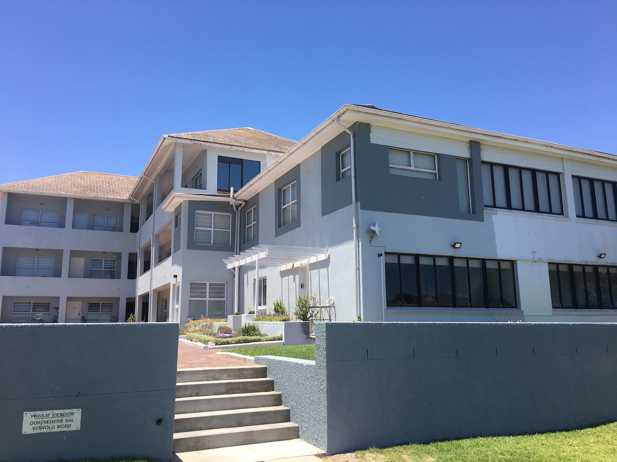 Warm open-plan studio apartment for the lone traveler or adventure couple. Upgraded internet with UPS for load sheding This apartment complex is situated on Langebaan's main kitesurfing beach, with a shared braai/BBQ area on the beachfront. For the kitesurfers, there is an open grassy area to pump up and wash gear, as well as an outdoor shower. The flat has a full kitchen if you want to go Gordon Ramsy, and also walking distance to all restaurants/supermarkets if you want to treat yourself.