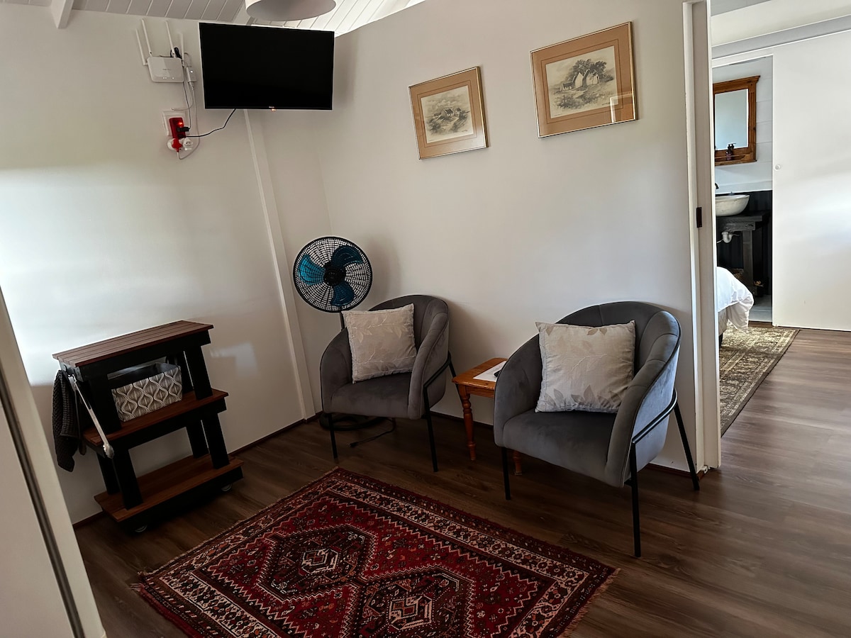 A cosy & pretty self-catering unit nestled privately at the back of the farm. This cottage has a king size bed, lounge and well-equipped kitchen with a walk-in closet. The private garden has BBQ facilities and a hanging day bed perfect for afternoon naps. There is also a splash pool. Well behaved pets are welcome. 1 pet @R100 per pet.