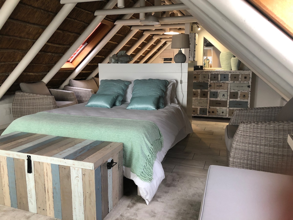 Spacious loft in a quiet area 3 minutes walk to the beach. ONE double sized open plan bedroom loft with a queen extra length and second double bed with bathroom. Ideally suited to a couple, family of 3 or 2 singles sharing. Full kitchen with new modern appliances - fridge/freezer, microwave, toaster,air fryer, electric frying pan and toaster. No TV Private entrance with outside area. Weber braai and supplied on request. No smoking No crayfish to be cooked on the premises