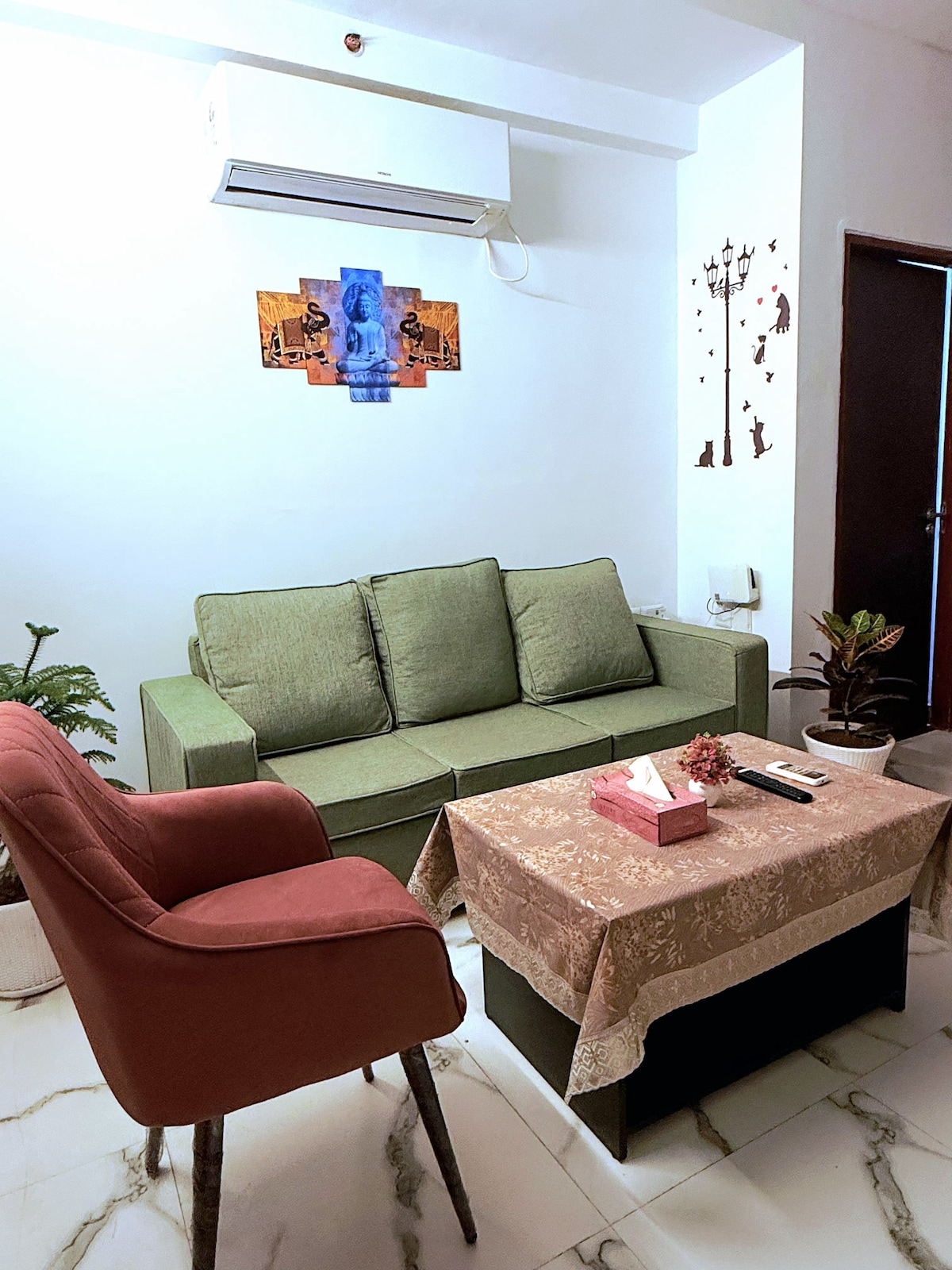 Step into a bright and peaceful 2BHK apartment curated by Pragya & Chetan in F-Block, Sector 57. The home is ideal for families, small groups, and guests planning longer stays. Located on the 2nd floor (without lift), the apartment offers a warm, well-designed space with all essentials for a comfortable and relaxing visit.
