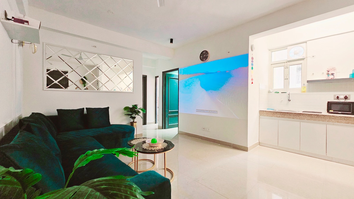 Welcome to The BrownGrey Luxury APT! It’s perfect for a weekend getaway or a long, cozy stay. -Please note: Loud music and parties are strictly prohibited. -Features include self check-in. -Fully equipped kitchen. -4 cozy bedrooms with ACs. -Fast internet for WFH. -Easy access to Uber/Ola/BluSmart. -The convenience of ordering food via -Swiggy/Zomato. -There's also an on-site restaurant. -Just 35min from the airport.