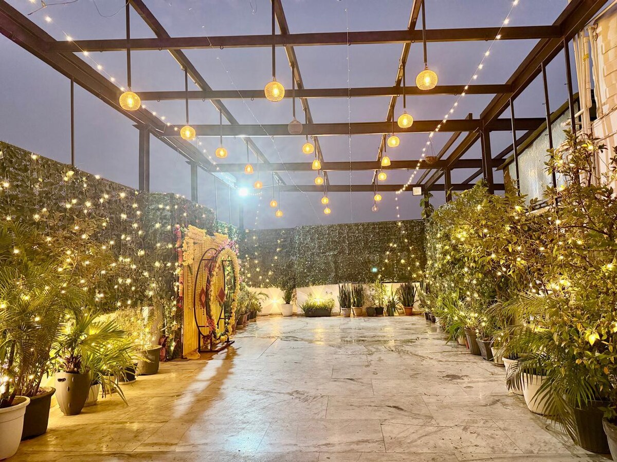 You may book the terrace along with our luxurious floors for a great family/friends get together. airbnb.com/h/wowhomedelhi airbnb.com/h/luxurioushome-delhi Please note terrace may also be booked separately. It has a full bathroom on the terrace and a car parking on the ground floor. However to get bedrooms you will have to book any of above listing given above