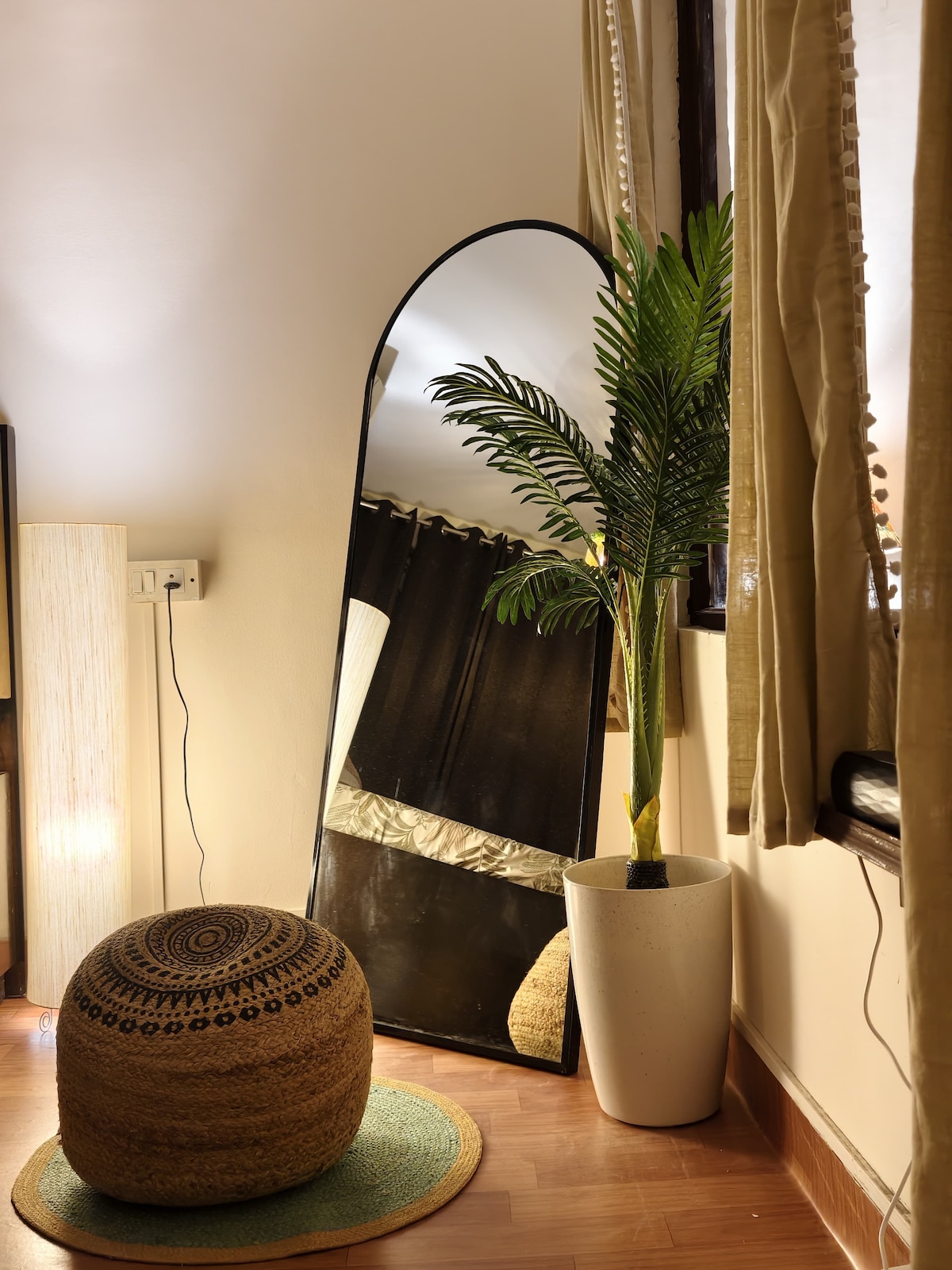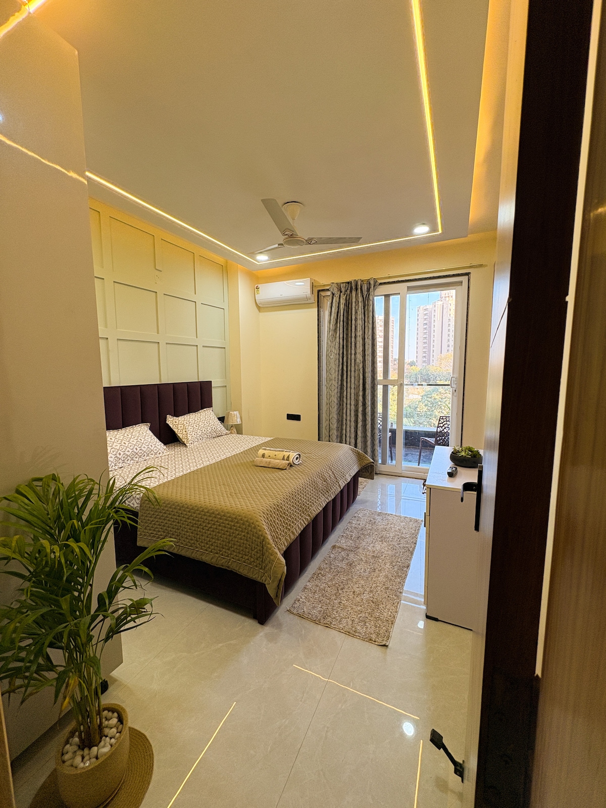 Wake up to breakfast & tea/coffee in this peaceful urban retreat, a space that feels like a warm hug, nestled ~3 mins from Golf Course Road, yet SO peaceful! Includes complementary essentials for your breakfast & tea/ coffee. Every small detail such as scented candles, air diffusers, sound system, mood lighting, personal care items, cooking essentials, board games & decor items are thoughtfully curated to make your stay cozy, comfortable, and unforgettable." 🏡💛