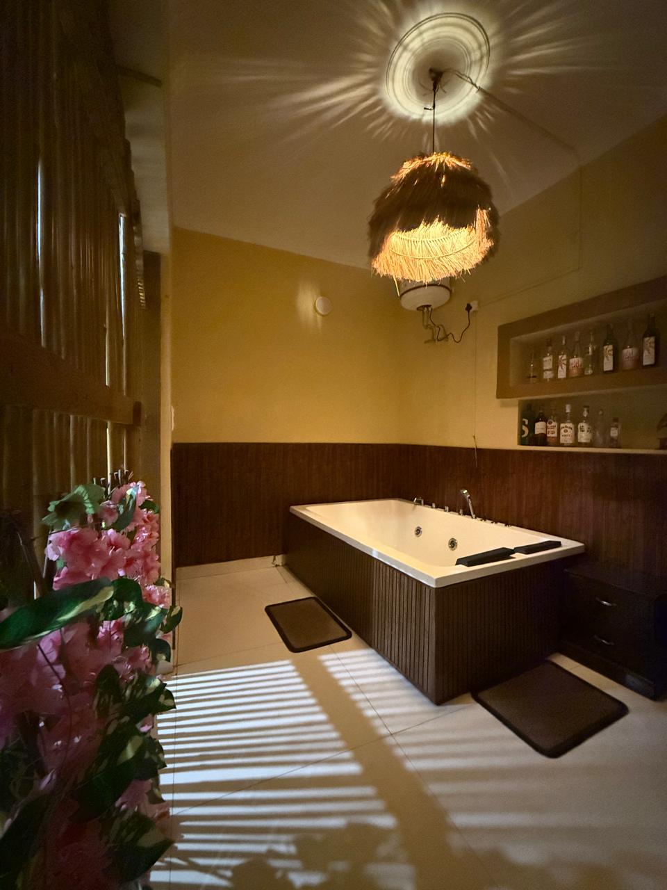 This charming 1BR features a Jacuzzi, a beautiful terrace & lush plants. It's a cozy, intimate space-not a large, expansive setting,with intentionally rustic decor. Please read ALL details before booking, including the "Other details to note" section & check our unbiased guest reviews! Photos with candles, flowers, and fairy lights showcase our romantic setup, available for Rs. 2950. Hot water in the Jacuzzi is offered from December to February.