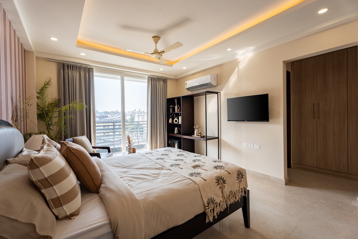 Stay in style at our Luxury Room in Sector 57, Gurgaon. Just minutes from Artemis Hospital, Golf Course Road and Sector 54 Chowk Metro, it offers seamless connectivity across the city. Ideal for medical, business and leisure stays, the room blends modern comfort with elegance. We are licensed to host foreign nationals. Early check-in will be subject to availability and chargeable Rs.500 as well as late checkout will also be the same with ₹500 added for every 3 hrs thereafter. Book Now.