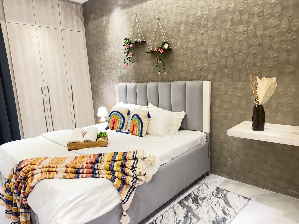 This beautifully designed 1BHK flat blends modern comfort with cozy charm, perfect for solo travelers or couples. Step inside to discover an inviting living space, featuring stylish decor and a comfy sofa ideal for relaxation. The fully equipped kitchen boasts contemporary appliances. Retreat to the serene bedroom, where a plush queen-sized bed ensures a restful night’s sleep. 2 chic bathrooms includes all essentials and toiletries provided. Amenities like Wi-Fi, air conditioning, etc.
