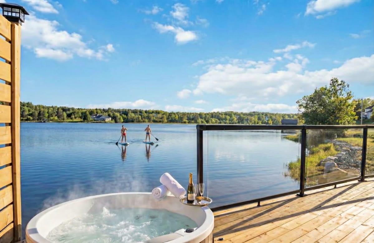 HOOK'd 14 is your seaside sanctuary. Step into modern luxury in this open-concept unit, featuring a hot tub overlooking the sea and a waterfront deck brimming with amenities. Enjoy the comforts of home and beyond with air-conditioning, a fire pit, and more in this private community oasis. Complete with a private pier and boat launch, HOOK'd 14 invites you to experience waterfront living at its finest, just moments away from the heart of Lunenburg village.