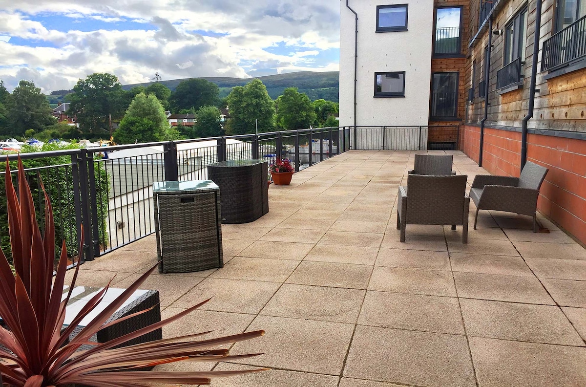 5 miles from Loch Lomond Spacious, warm & comfortable 2 bed / 2 bath apartment with uninterrupted views of the River Leven & Dumbarton Castle (former home of Mary Queen of Scots). Opening windows allow you to enjoy the sound of the flowing river of this ancient capital of Strathclyde. There is a great choice of restaurants, bars & convenience stores within walking distance with 3 major supermarkets within 5 minutes drive. 5 minutes walk to trains & buses that access many Scottish attractions.