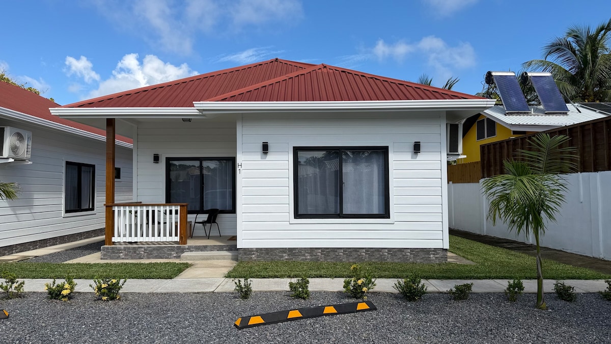 Enjoy a cozy cabin surrounded by nature next to a mango tree, featuring a queen bed, private bathroom, Wi-Fi, and parking. Just 3 minutes from the beach, it’s ideal for a peaceful getaway. Your stay includes breakfast at Bean Crazy Café, just a few steps away the perfect way to start your day! Come relax and enjoy!