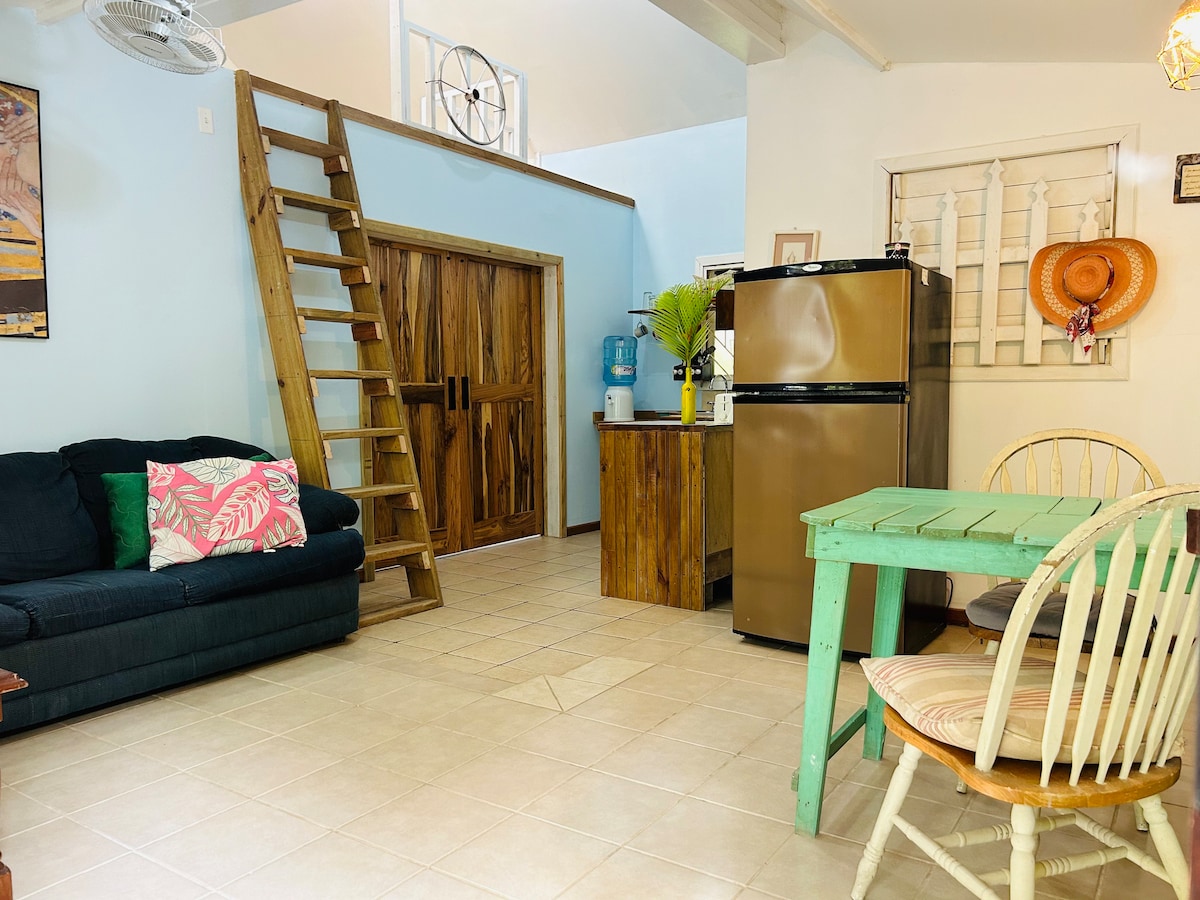 Escape to this cozy loft cabin in the heart of Sandy Bay. Surrounded by tropical greenery, it’s the perfect peaceful retreat for couples or solo travelers. Enjoy a comfy queen bed, kitchenette, and a private deck to sip your morning coffee. Just minutes from the beach, dining, and top snorkeling spots. Includes Wi-Fi, A/C, and free parking. Experience the charm and calm of Roatan from this serene island hideaway.