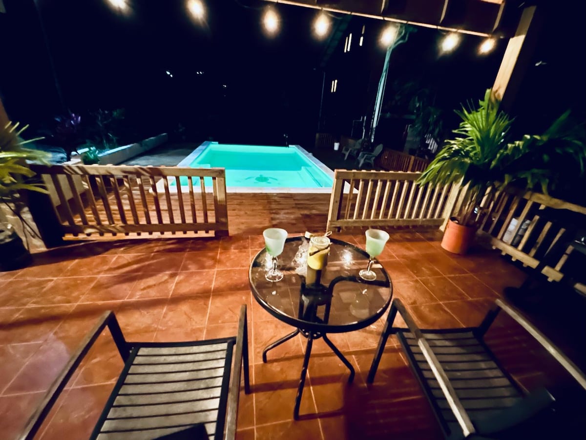 Welcome to Ruby Villa 🌺 at Gran Emerald Oasis, West Bay, Roatán! This private 2BR villa has a pool, deck and garden, perfect to unwind. Just 5 min to Luna Beach Resort for dining, coffee and beach fun ☕🏖️. Snorkel, ride horses and sip margaritas 🍹. Walk 20 min to West End bars and restaurants or take a 5-min water taxi to West Bay. Dive shops just 5 min away! 🐠🌴