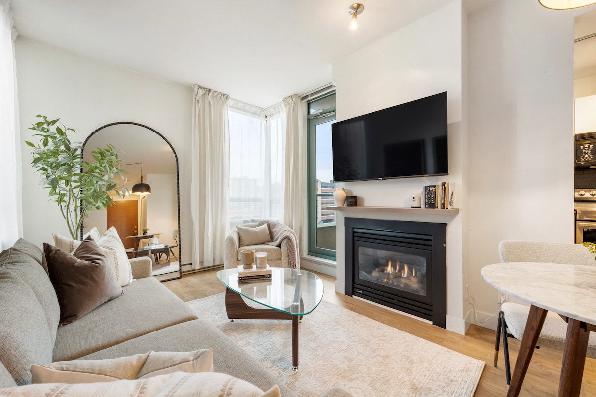 This cozy condo is located in the heart of Vancouver Downtown, With a welcoming fireplace and a free underground parking spot, it’s the ideal escape after a day of exploring the city. Just steps away from the SkyTrain and seaside beach, Whether you’re craving delicious local cuisine, shopping at trendy boutiques, or discovering world-renowned tourist attractions, everything you need is within walking distance. Experience the best of Vancouver, all from the comfort of this delightful condo.