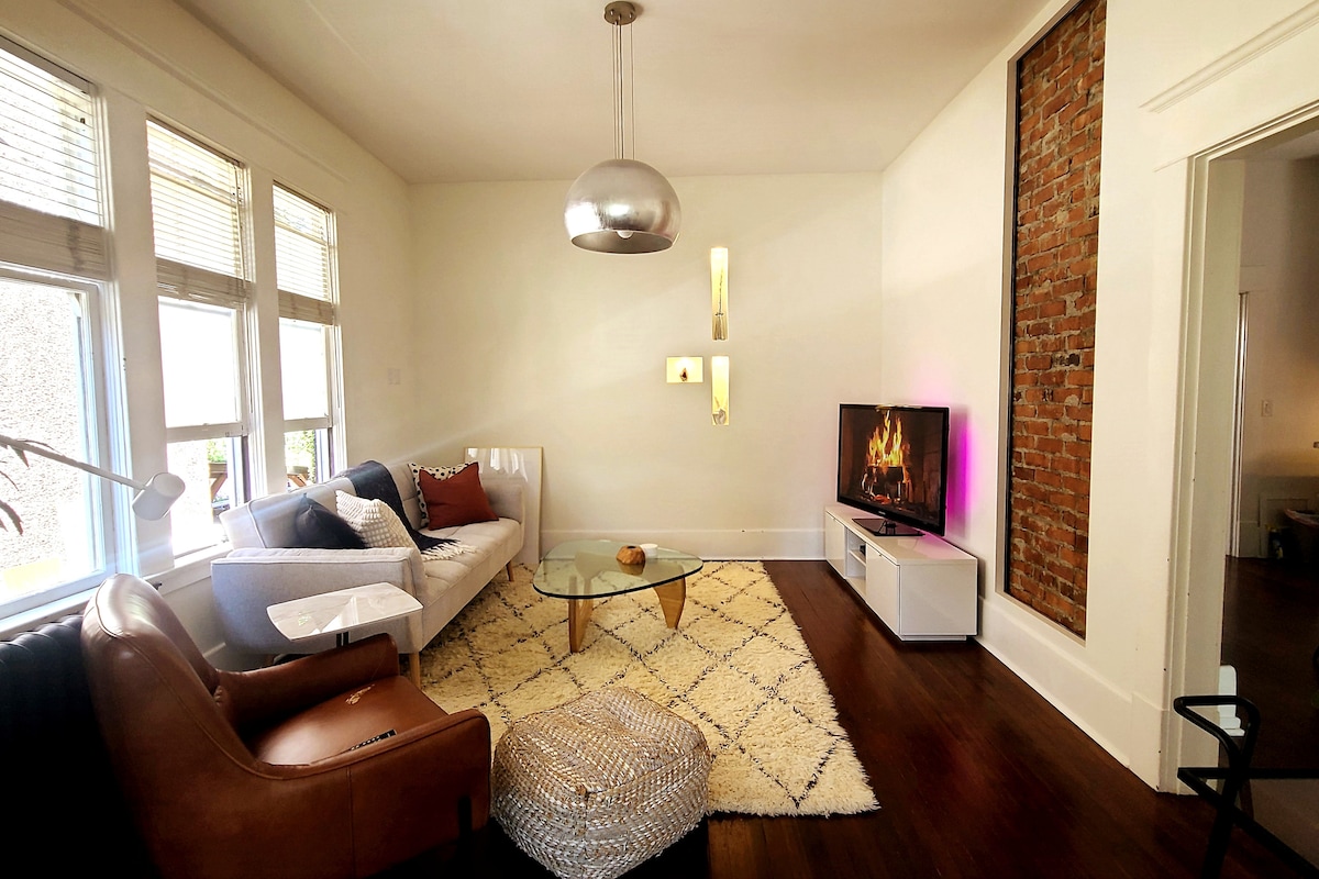 Self-contained, private, cozy, bright super clean suite. Well stocked with towels, blankets, kitchen supplies, flat screen tv, soaker tub and heated bathroom floor. Safe and eclectic walkable neighbourhood adjacent to park and playground, family, queer and 420 friendly. Free street parking. Very close to public transit. Double bed sleeps two. We can also set up a third person in the pull out ottoman bed. Get extra squishy with a fourth person in the fold down chair that converts to a third bed.
