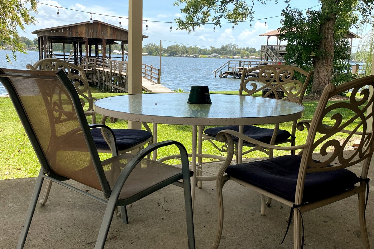 Fish all night! Coffee on the porch! Come get a taste of "Old False River" in our original 1960s lakefront fishing cabin. Fall in love with retro-fabulous and everything vintage! Steps from the water, this camp sits on a giant 75 foot lot with a carport and cozy screened-in porch. The inside is super clean with central air and heat and 2 window units. There's 2 swings - 1 on the pier and 1 under the porch, a fire pit, and tons of room for a big cookout! party barge can be rented