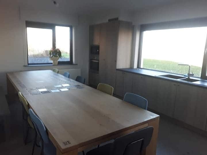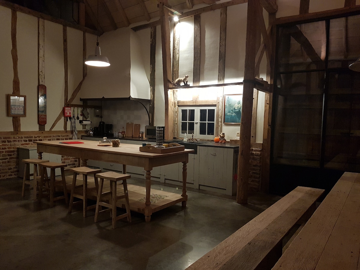 Een stijlvolle gerestaureerde schuur, vlakbij het kasteeldomein van Poeke. Comfort en luxe in een ongedwongen sfeer midden in het groen. Een plek om te ont-moeten, vergaderen, te inspireren en buitengewoon geschikt voor het genieten van stilte. Bij mooi weer kan U op het buitenteras vertoeven . Flatscreen, wifi, koffie- en theecorner, zijn standaard voorzien. Aan de robuuste houten kloostertafel met banken, kan U gezellig tafelen en boeiende gesprekken voeren.