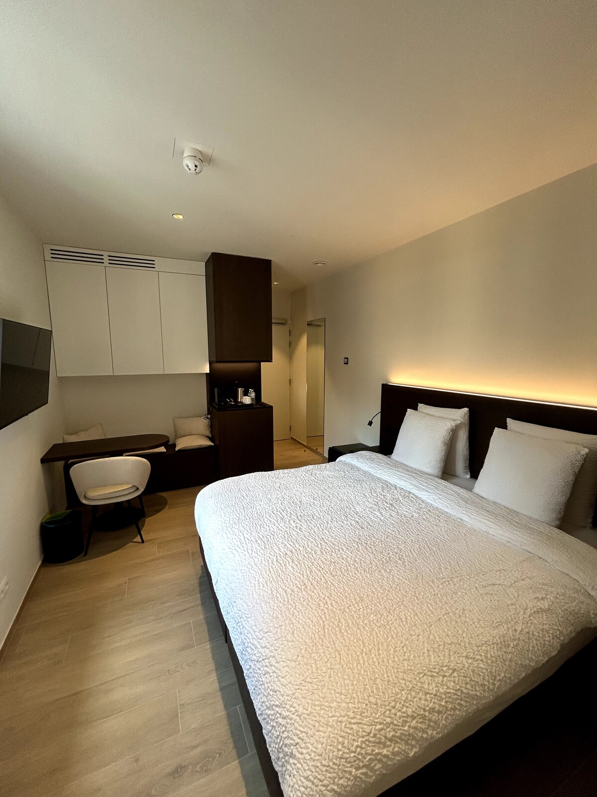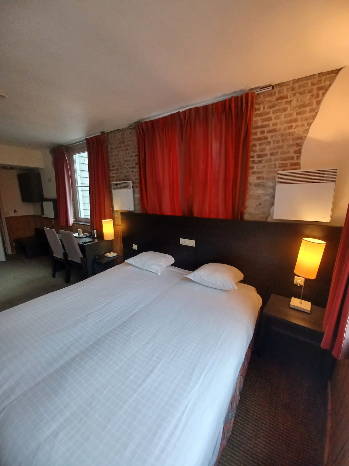 Experience stylish comfort in our room within a beautifully restored old-century hotel in Bruges. This room features modern amenities, including a double bed and a private bathroom. Located in a prime area of Bruges, our hotel provides easy access to attractions and cultural sites. While breakfast is not available, we are pleased to offer our guests complimentary access to our cozy coffee lounge.