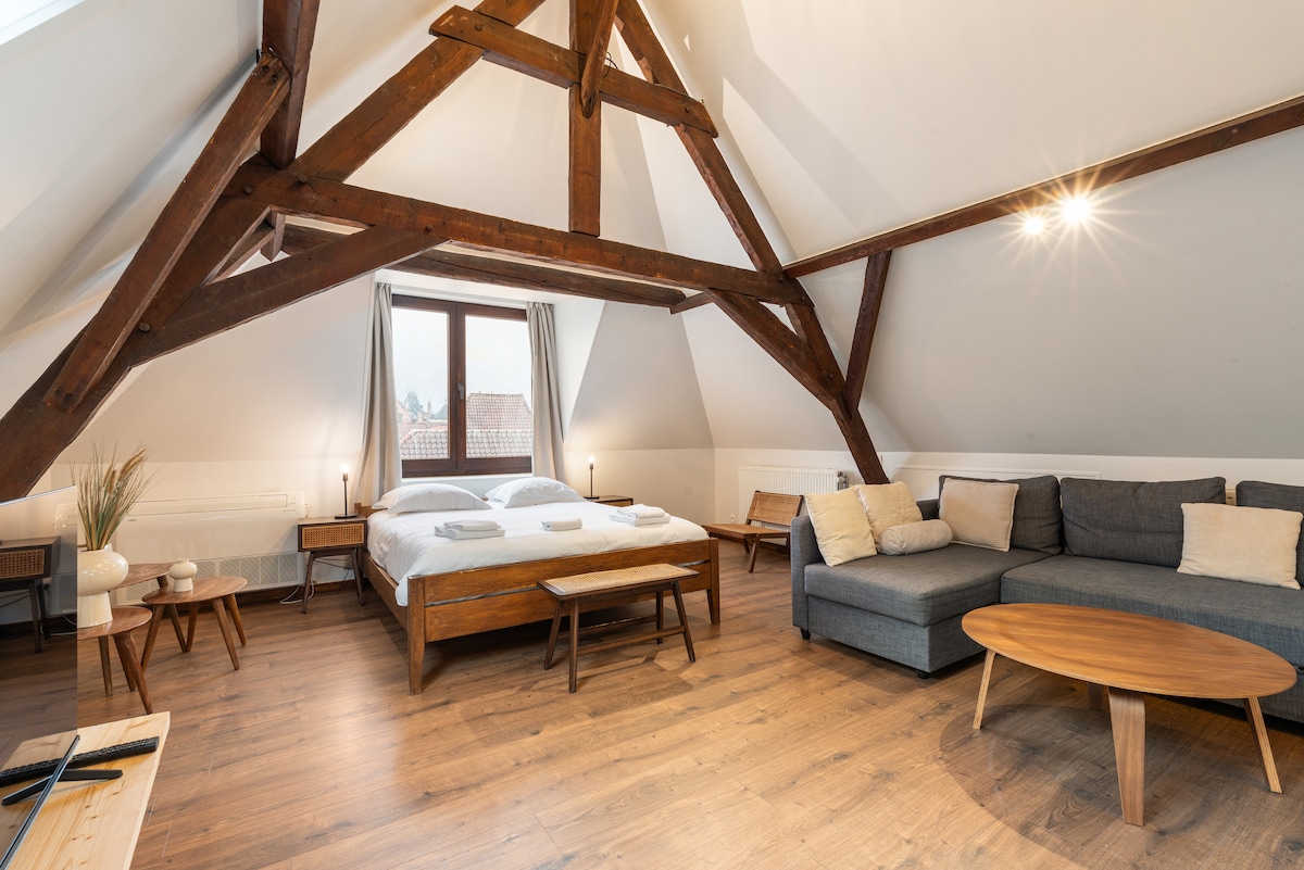 40平方米的阁楼,独特且位于市中心,免费羊角面包