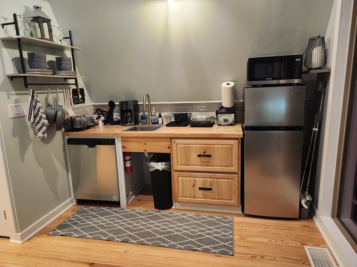 Make some memories at this unique and serene place. Overlooking the beautiful Ozark mountains, enjoy the stunning sunrise, or take a ride on Buckhorn Trails with your side by side or four wheeler. A 25 minute drive to the University of Arkansas if calling the Hogs is more your style! We are a short drive to Lake Fort Smith state park here in Mountainburg for fishing or swimming in the pool. We have a beautiful deck, a comfortable bed, and grill for you to cook your favorite meals.