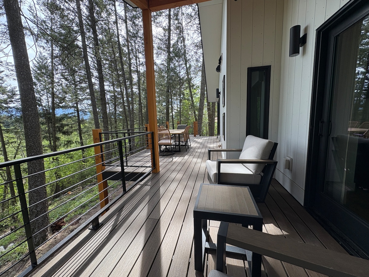 Our modern log cabin, with 2 bedrooms plus loft and room to sleep 6, is a hidden gem that sits a few minutes from the west entrance to Glacier Park. Featuring a spacious kitchen, large dining table, cozy fireplace, pool table, large walkout deck with wonderful views, outdoor firepit, picnic table, yard and private hot tub. With quick access to rafting, hiking, biking, equipment rentals, activities and even helicopter tours, it's the perfect home base for any adventure!