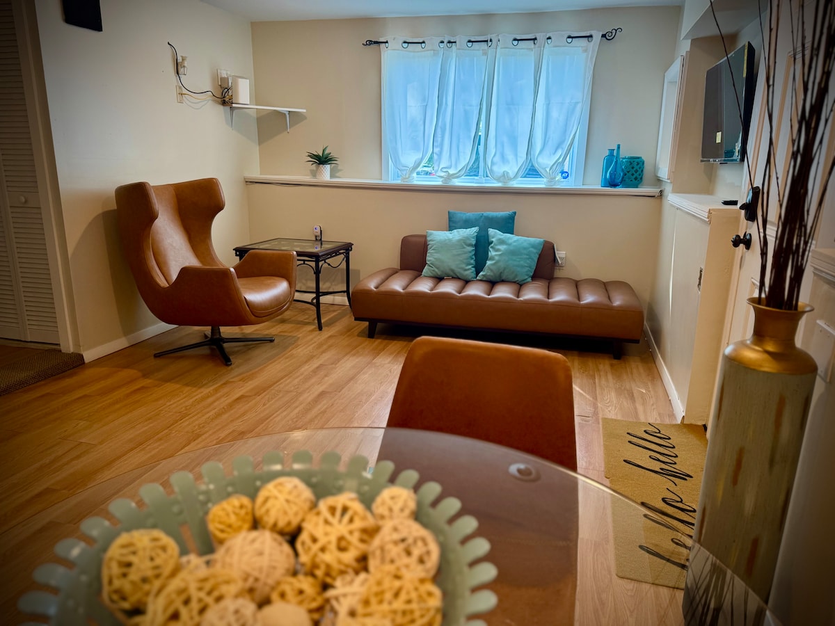 This unique guest suite located in a newly constructed home offers over 600 sq ft of space. There is a private entrance in a quiet and safe location. Minutes from CCSU, UCONN Med Center, I-84, downtown, restaurants and shopping. West Hartford Center is only 10 minutes away. KITCHEN DOESN’T INCLUDED STOVE , fridge, microwave, fully stocked coffee bar. Smart TV, high speed internet and work space are perfect for remote work.