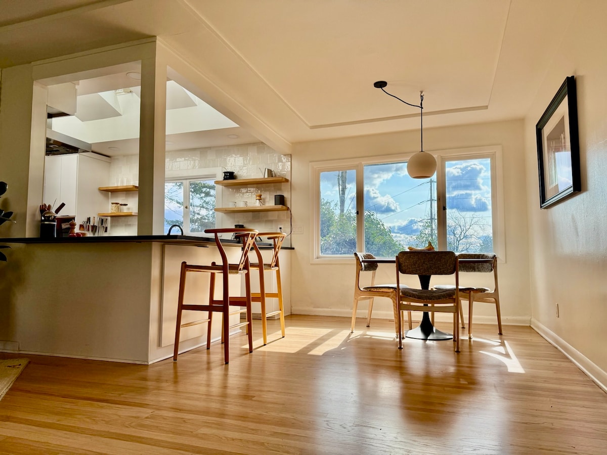 Welcome to our Midcentury Modern – a true masterpiece inspired by the iconic Frank Lloyd Wright. Nestled on a lush 1/3 acre private retreat, this architectural gem is just minutes away from Multnomah Village and Gabriel Park. Immerse yourself in the timeless beauty of this completely renovated mid-mod marvel, where high vaulted open beamed wood ceilings adorn every room on the main floor. This house is perfect for friend groups, families or corporate retreats. Note: 4 bedroom, 2 bath, 2 kitchen.