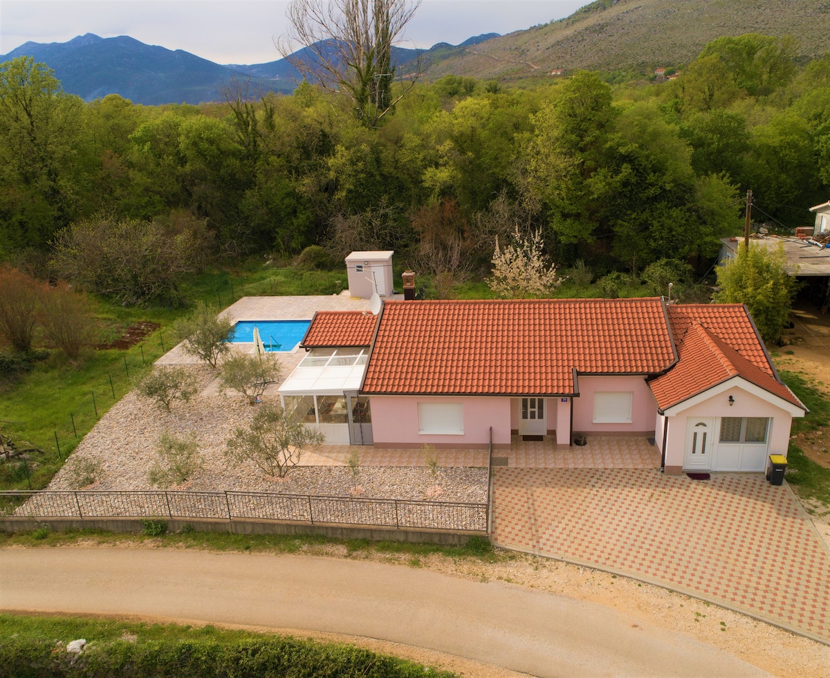 Welcome to Riverside A-Frame Retreat on the Trebižat River! Discover a unique getaway in our charming A-frame house nestled right on the banks of the beautiful Trebižat River. Surrounded by greenery and nature, this cozy retreat is perfect for families and friends looking to relax, recharge, and create unforgettable memories. 🏡 The Space 3 bedrooms 🌿 What We Offer Private river beach – your own peaceful spot by the water Outdoor jacuzzi on the terrace with stunning views