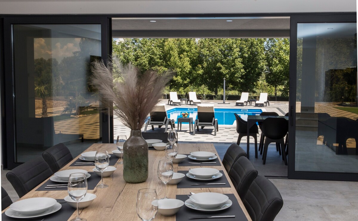 Opustite se s cijelom porodicom u ovom mirnom smještaju. Luxury 12-Bed Villa | Private Heated Pool, EV Charger, Near Mostar & Kravice – Sleeps 24 "Exclusive group rental" "Wedding/event-friendly" "Counter-current heated/cooled open swimming pool" "Fast WiFi (200 Mbps) – Remote work ready"