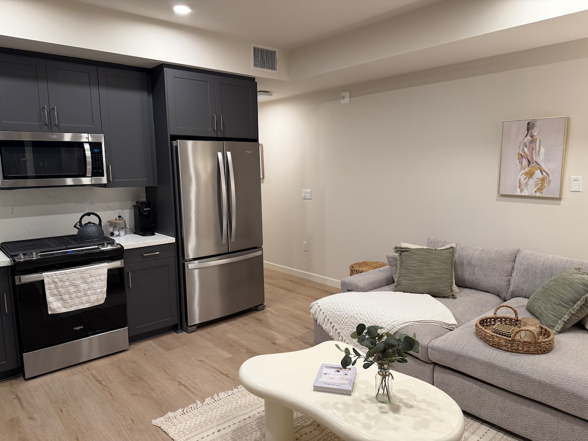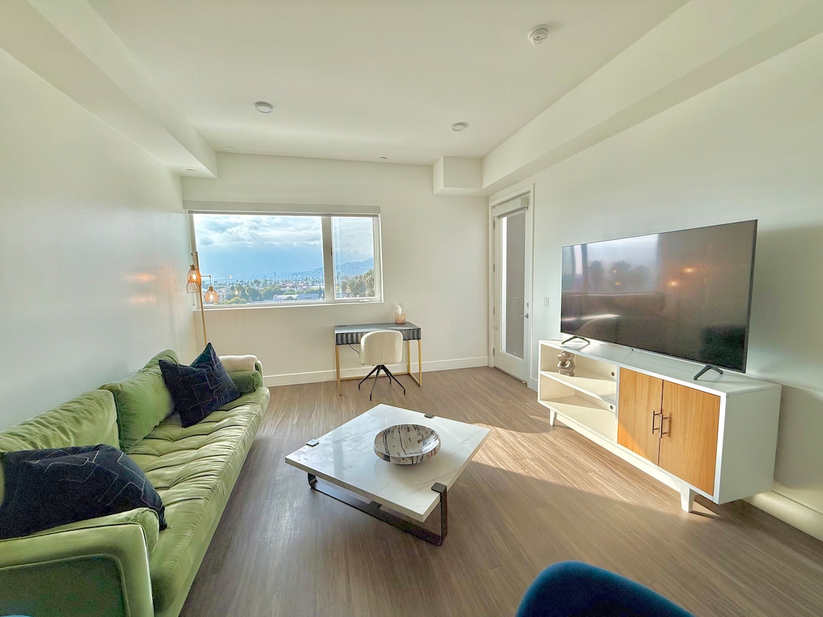 Experience Hollywood in style in this brand-new 1BR/1BA luxury retreat. Enjoy sleek modern design, new high-end appliances, and a bright, comfortable living space. Relax by the resort-style pool and jacuzzi, or unwind on the rooftop with breathtaking city views. Perfect for vacation or business stays, with fast Wi-Fi, premium amenities, and free on-site parking. Located in a new building near top attractions, dining, and studios for an unforgettable stay.