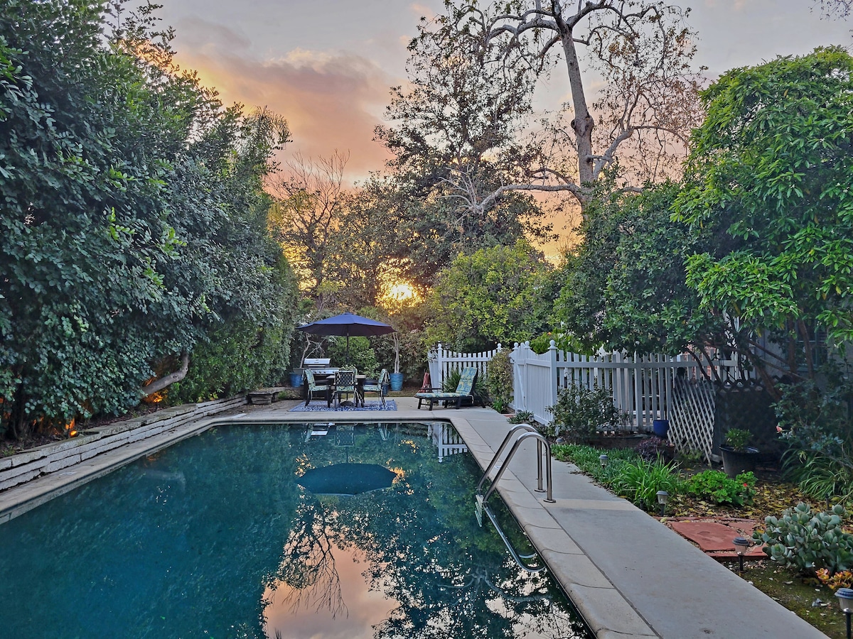 在迷人的 Encino 别墅,在泳池边的遮阳亭中保持凉爽