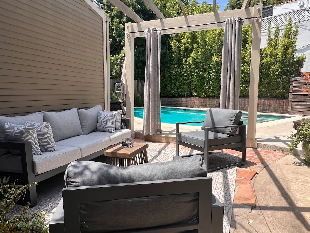 This home is located near bars, restaurants, Sunset Blvd. , Hollywood Blvd., and Melrose Ave. Enjoy this beautiful space with modern design and furniture in a quiet courtyard filled with plants, flowers, and citrus trees. Enjoy the So Cal weather and walk to nearby Plummer Park and Runyon Canyon. Quiet tree lined street with close proximity to attractions and nearby beaches.