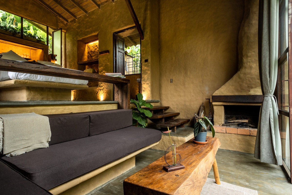 Experiencia auténtica en un estudio de arte que conecta la naturaleza en un lugar mágico, fresco; que nace de la inspiración y manos de una pareja de artistas. ✺Ideal para escritores, músicos, yoga, retiros o relajarte con tu pareja. Espacio único de construcción alternativa earthship con materiales reciclados; llantas, botellas y materiales naturales: Bambú, madera y arcilla. A 5 min del Lago Arenal y 1.15h de atractivos icónicos: Fortuna, Río Celeste, Playas, Termales y Monteverde.