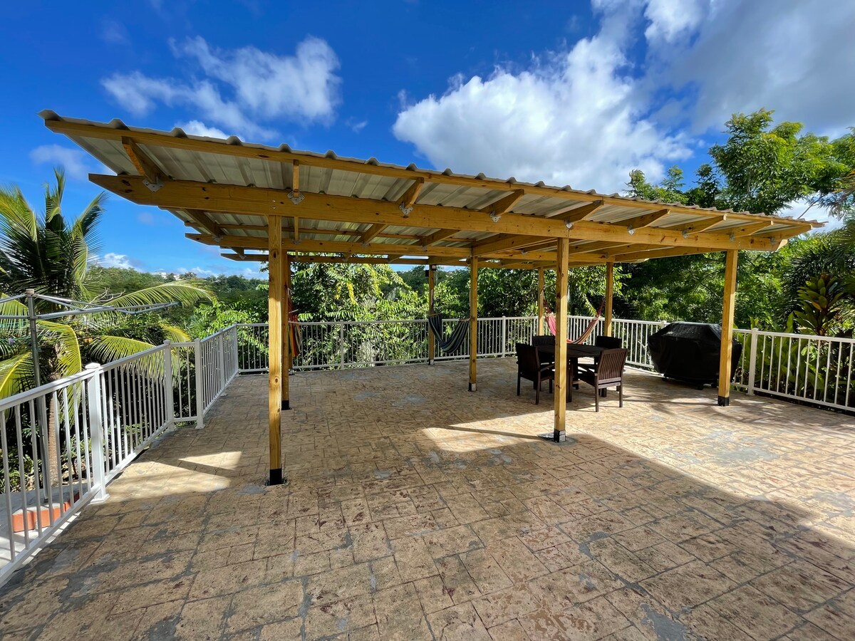 This spacious apartment is the garden floor of a two story home close to downtown Ciales where there is a Coffee Museum, organic farms, amazing caves and climbing cliffs, high peaks hiking, river swimming, and a quick drive to the Atlantic Ocean. The very clean and spacious room is equipped with ceiling fans, an outdoor heated shower, and full kitchen with large refrigerator, gas stove and oven. The owners live on site and are available to assist with check-in and all of your trip planning.