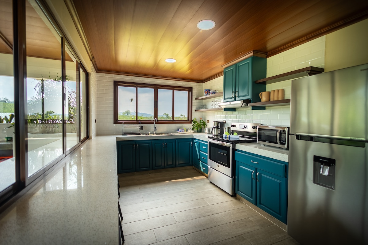 Quinta La Ceiba is in heart of a dairy farm, surrounded by green pastures, cows, and mountain views. Enjoy sunrises and sunsets from this 3-bedroom house. Features include a fully equipped kitchen, very comfortable beds, and outdoor dining plus a living room with a hanging bench, perfect for relaxing and enjoy the nature surrounding it, ideally located between Bajos del Toro and La Fortuna with endless nearby adventures. Inquire about the private chef service.