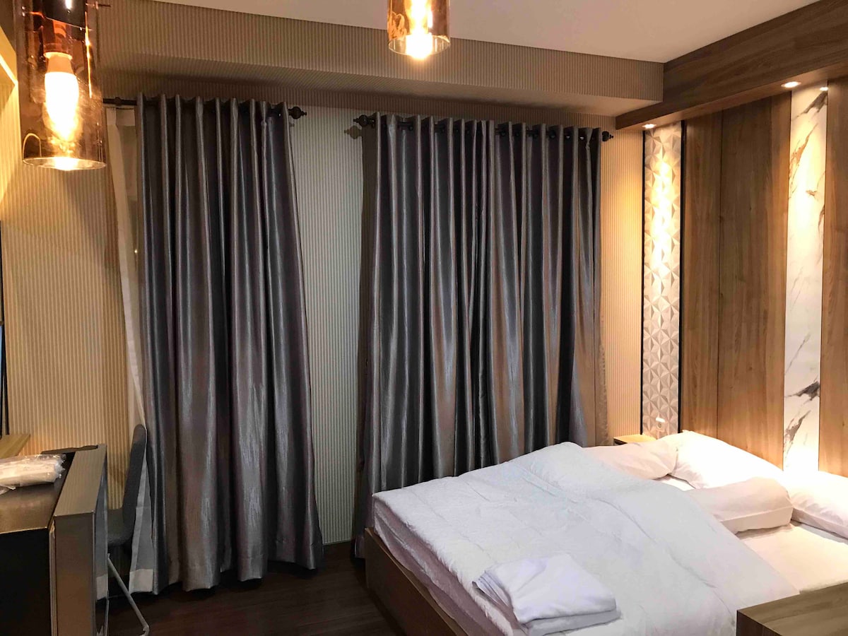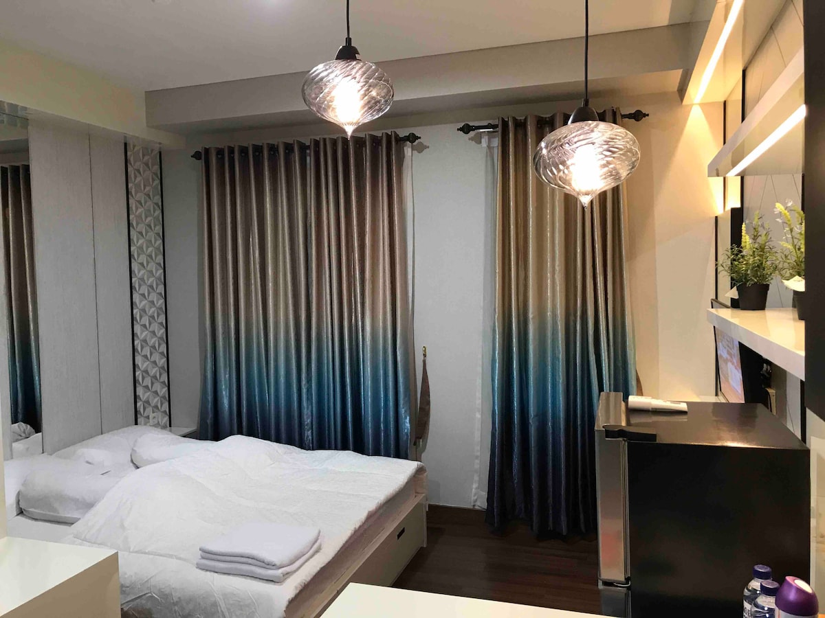 This is a spacious, clean studio which can be turned into 1 comfortable bedroom. It has a portable dividing wall. Designed in scandinavian style. This rare-type apartment has an extremely beautiful city light view of Jakarta. Surrounded by restaurants, bar, entertainment and offices, this apartment is very suitable for both professionals and family. The apartment has restaurants, clinic, mini market, gym and swimming pool, qand 24-hour security system for safety. CCTV abailable in each floor